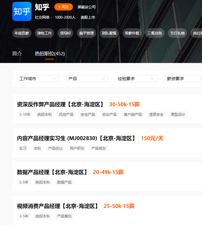 银柿财经注意到,目前招聘平台上知乎内容运营岗位仍有大量招聘需求。