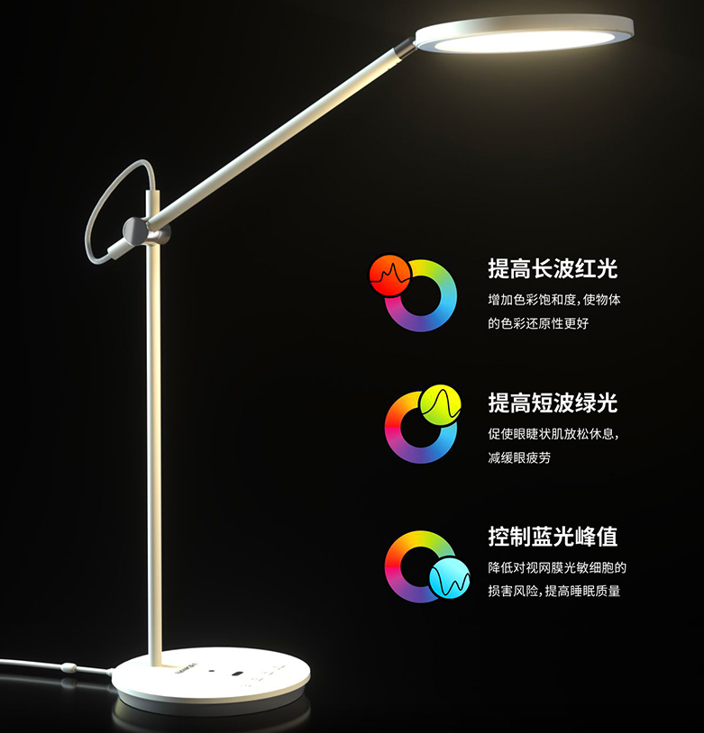 南卡护眼台灯L1具有高度接近且还原自然太阳光的全光谱照明效果,补全了普通LED缺少的光波,增加长波红光、短波绿光,控制蓝光的峰值,具有更均匀的光谱,带来舒适且健康的太阳自然光效果,给孩子带来更好的用眼环境。