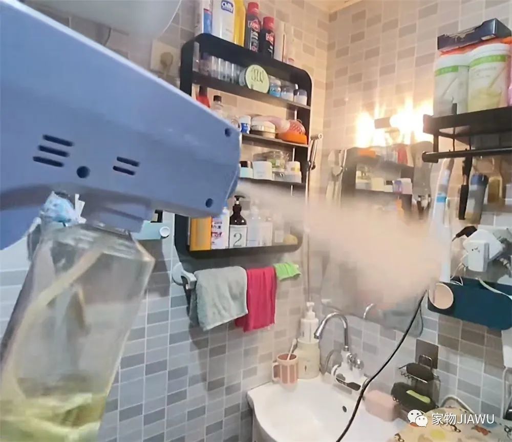 卫生间内之前也挺乱的,但好在没有霉渍,所以几位整理师三下五除二就将一些洗漱化妆用品规整到位,而后进行消毒。