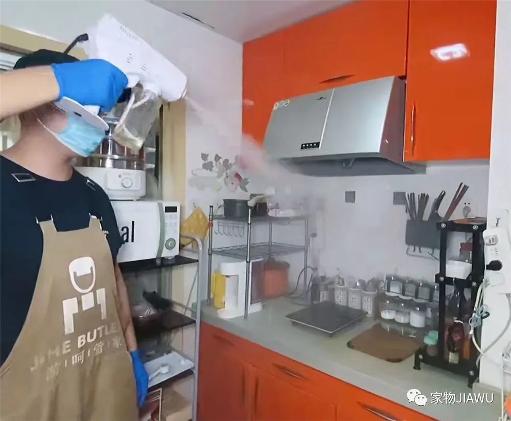 最后同样给厨房进行了一次彻底的消毒,完成了厨房区域的清洁和打扫,几位保洁师小哥也是长舒一口气。