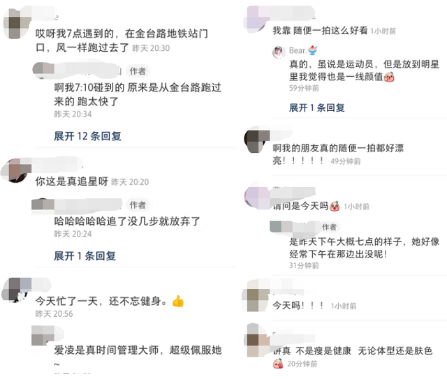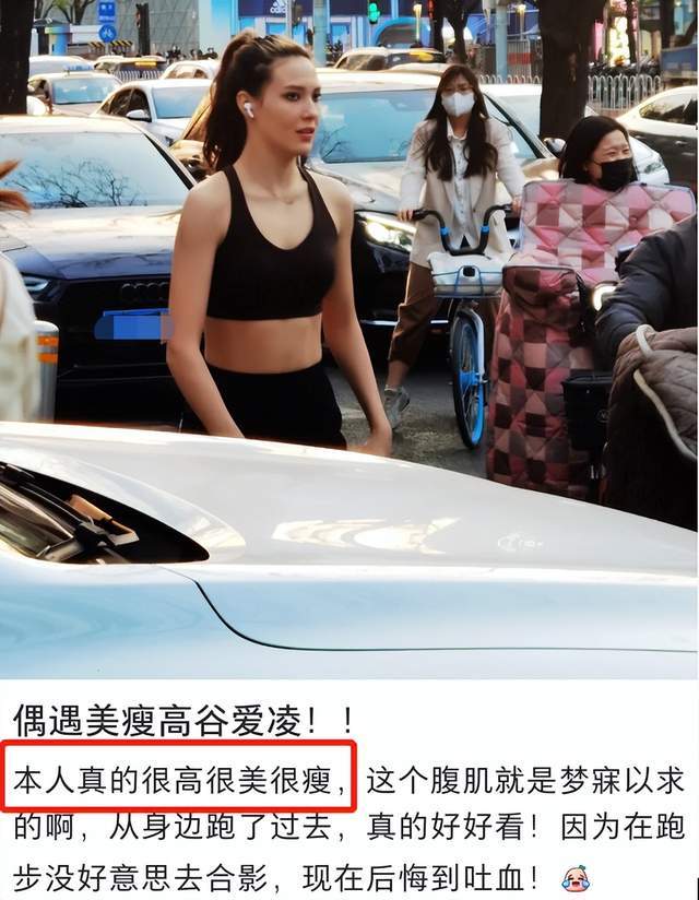 近日,有网友在某社交平台晒出了自己偶遇谷爱凌在街边跑步的照片。该网友称,谷爱凌本人很高很美很瘦,并且说谷爱凌的腹肌简直就是网友本人梦寐以求的样子。该网友还说没好意思上前合影。其实跑步时不打扰谷爱凌,是很礼貌的行为,值得提倡。