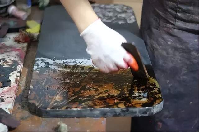 大漆初始性软的特性被善加利用。漆上动刀也称为雕漆。在器物表面刷出一定厚度的漆,再在漆层上雕刻花纹,根据漆层颜色的不同,可以分为剔红、剔彩、剔犀等。雕漆的繁,不仅繁在精细的雕刻,更繁在一层层刷出的厚漆上。能够进行雕刻的漆层,一般在8-15毫米,1毫米厚的漆就要刷17遍,还得等自然阴干之后再刷下一层,所以一天只能刷2-3层。
