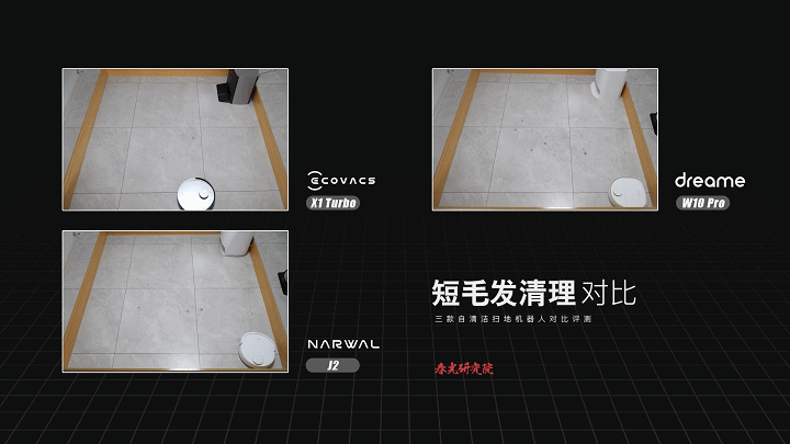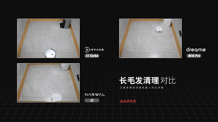 接着换到3cm左右的碎头发,这一次的表现就比较好了,在经过三款产品的一轮清理之后,都没有缠绕。唯一的问题是云鲸略微有一点点的残留。