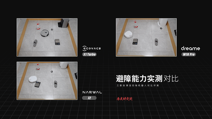 最终的结果和我们的猜想大致相同,科沃斯对1个障碍物是轻微触碰,1个障碍物是产生位移;追觅是没有发生轻微触碰,2个障碍物发生位移;云鲸是1个障碍物轻微触碰,3个障碍物发生位移。带有AI算法的科沃斯和追觅,整体表现要强于云鲸。