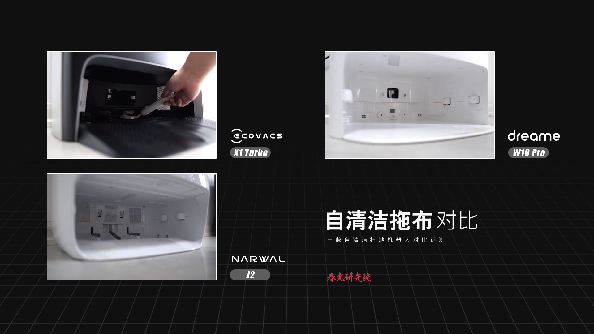 4、内置水箱:接着是水箱的差异,科沃斯在机器人内部设计了一个80ml的水箱,其他两款都是没有的,所以科沃斯的单次湿拖时间会更长,清理效率也更高。但是我们认为这是一个双刃剑,因为拖布是没有容污能力的,如果把单次湿拖时间拉的过长,会导致拖布越来越脏,后半程的清理能力会下降。也建议大家在使用这类产品的时候,把回洗拖布的周期设的短一些,保证清理效果。