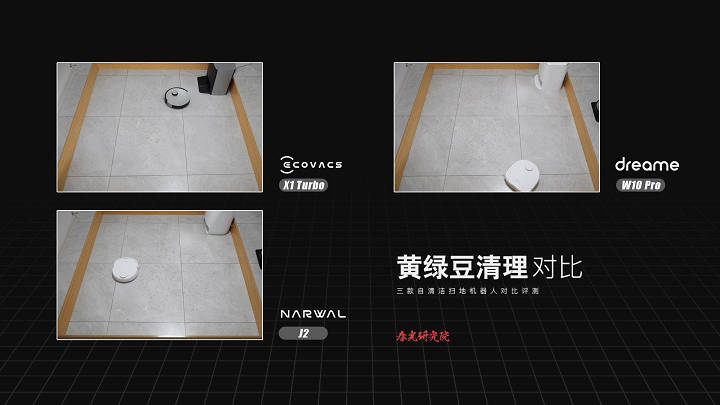 吸力最大的科沃斯竟然翻车了,我们猜测的原因是:科沃斯边刷超出机身部分的长度太长了,比追觅和云鲸都要长,所以导致它击飞了太多的豆子。