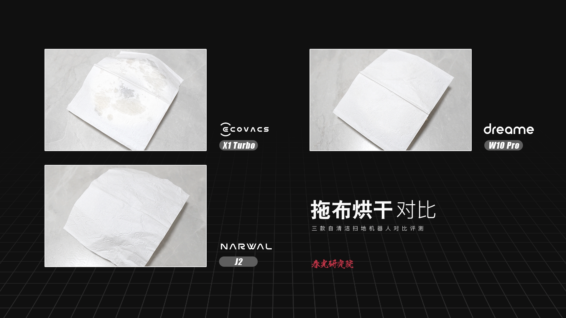 接着是对于拖布的烘干测试,前文已经提到了,科沃斯是冷风,追觅和云鲸都是热风烘干。