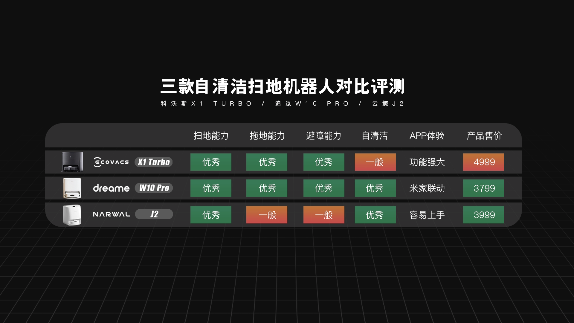 6、最后来看价格,在4000元的价位段上,追觅(3799)要比云鲸(3999)更有竞争力,实测表现更好,而且追觅标配了银离子除菌,诚意看起来更足一些。云鲸的优势在于它有自动上下水的版本(+299元),有特殊需求的用户可以考虑。对于科沃斯和追觅,二者的实力是比较接近的。科沃斯加入了语音功能,但是贵出了1000块,不差钱的用户可以考虑一下。至于追觅,还是一样的结论,它的综合性价比要更高一些。