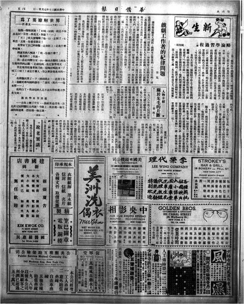 《美洲华侨日报》刊发的重要消息,大量来自中共主办的新闻机构。1940年 9月 27日,在香港主持八路军办事处并负责海外工作的廖承志致信周恩来说:我们在香港直接发行油印的《华侨通讯》寄发各地报馆,纽约《美洲华侨日报》“站在统一战线立场,赞扬我们党的意见”。主持过国际新闻社(简称“国新社”)工作的陆诒回忆说:“海外华侨报刊和国内各地报刊大量采用‘国新社’的通讯和专稿”,他特别提到,“《美洲华侨日报》是我们的基本订户,尽量采用稿件并同我们经常联系”。