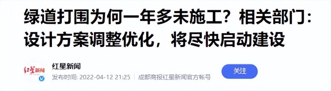 今年4月12日,红星新闻报道也发布了关于铁像文旅环高新南区盛邦街到大源公园沿肖家河施工暂停的报道。高新区公园城市建设局回应称,“该段因设计方案调整优化,暂未施工,待前期工作完善后,将尽快启动建设。”