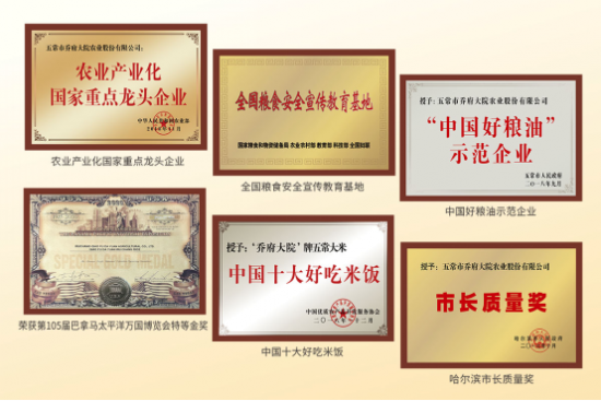 乔府大院创始人、董事长乔文志,专注和坚守五常稻米产业20余年,带动农民增收近亿元,为五常大米行业发展做出突出贡献,荣获“全国农业劳动模范”、“全国十佳农民”荣誉称号,担任哈尔滨市粮食行业协会会长、五常市大米协会会长。