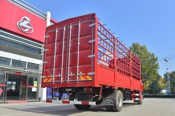 底盘部分,采用的是速比为4.33的8T级后桥,应用前8后9+5片渐变板簧悬挂,匹配规格为9.00R20的轮胎,满足卡友对承载能力上的需求。而货箱尺寸上,卡友可以根据自己的用车需求,选择长6.8米、宽2.46米的仓栅式货箱,也可以选择规格为长6.8米、宽2.46米、高2.65米的厢式货箱,货箱容积能够得到保障。