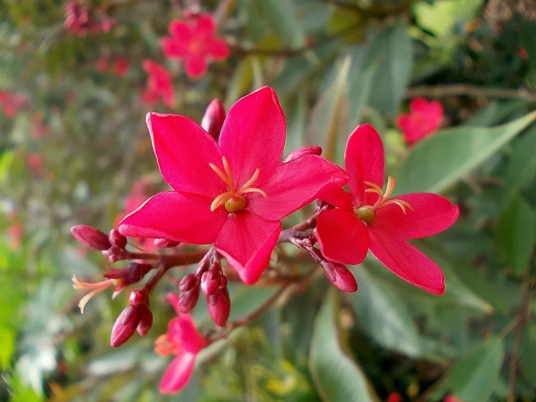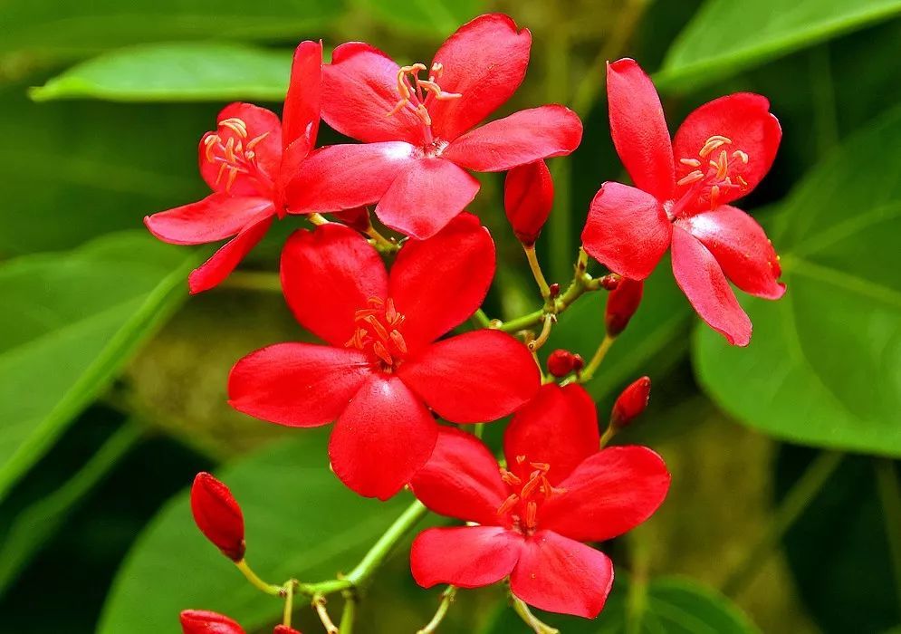 琴叶珊瑚一看就知道是热带花,它的花朵艳丽小巧,像一个个小五角星。它的植株一般可以长到一两米高,如果不修剪,它能长成两三米高的大灌木。