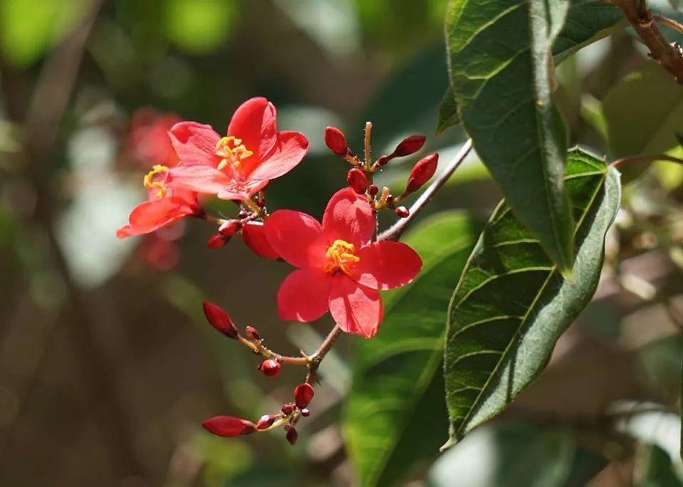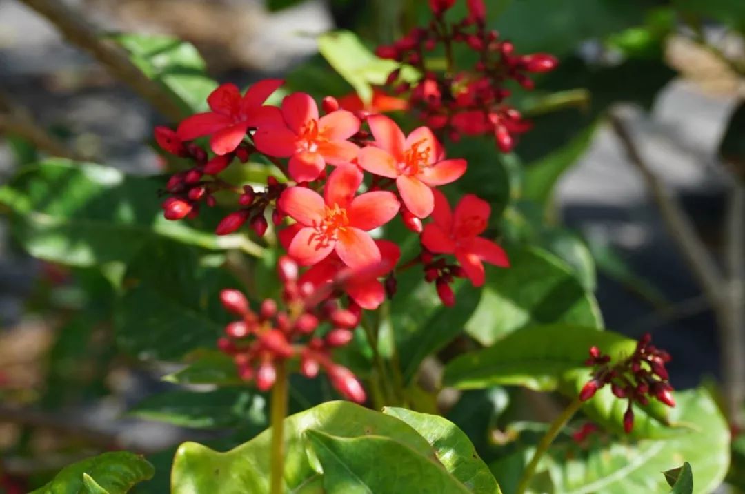 有很多可以四季开花的植物,其实都是有条件的,需要有常年温润的环境,常年没霜冻,且光照充足,才能保证它们能常年孕育花朵。就比如今天的主角,它就是琴叶珊瑚,叶子如同提琴般,花朵精致小巧。