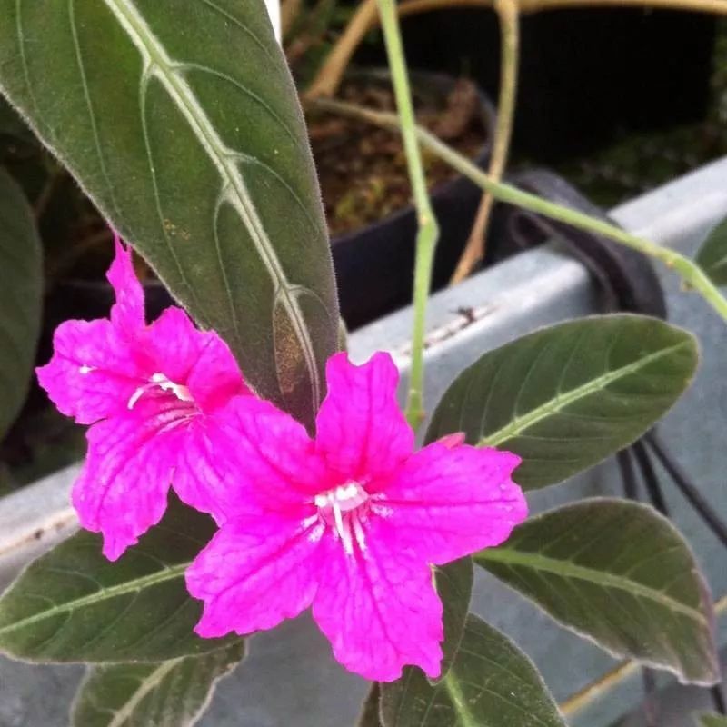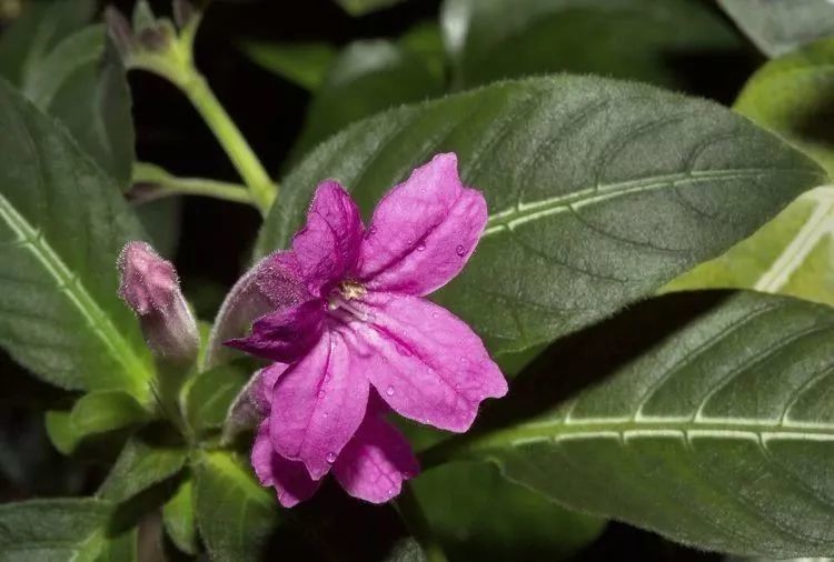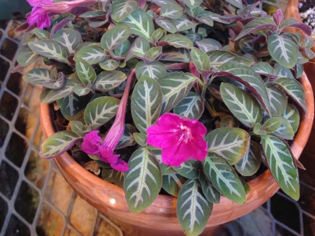 马可芦莉的植株并不会太大,它就有点类似于非洲紫罗兰或大岩桐,它的叶片和花朵观赏性都挺好的,我觉得它的叶子上有着小绒毛,颜色是深绿色的,还会有银色的脉络,花朵像是一个古老的录音机上的喇叭。