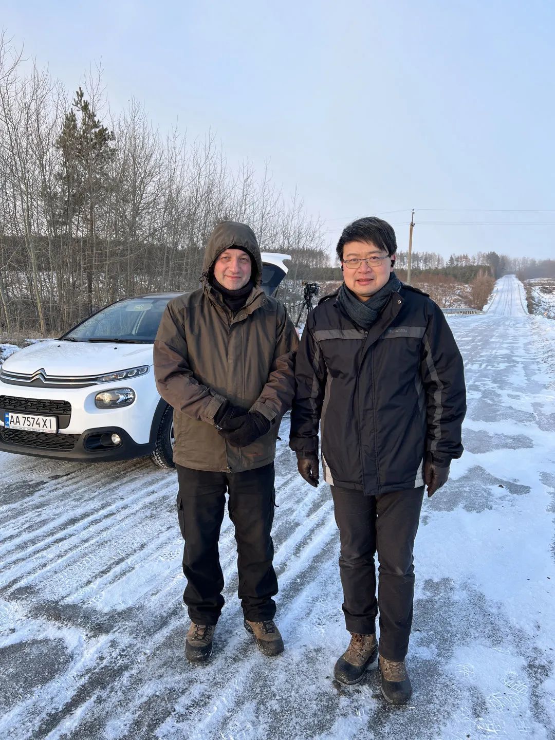 科瓦利(左)和曹劼(右)今年1月在乌克兰的雪地合影