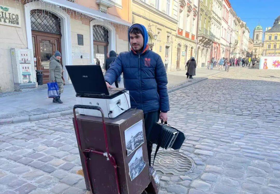在利沃夫旅游景点做生意的当地小哥: