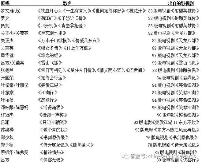 金庸影视剧歌曲推介列表
