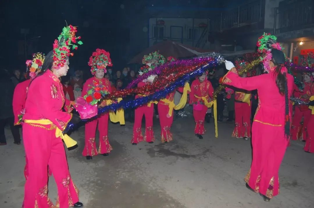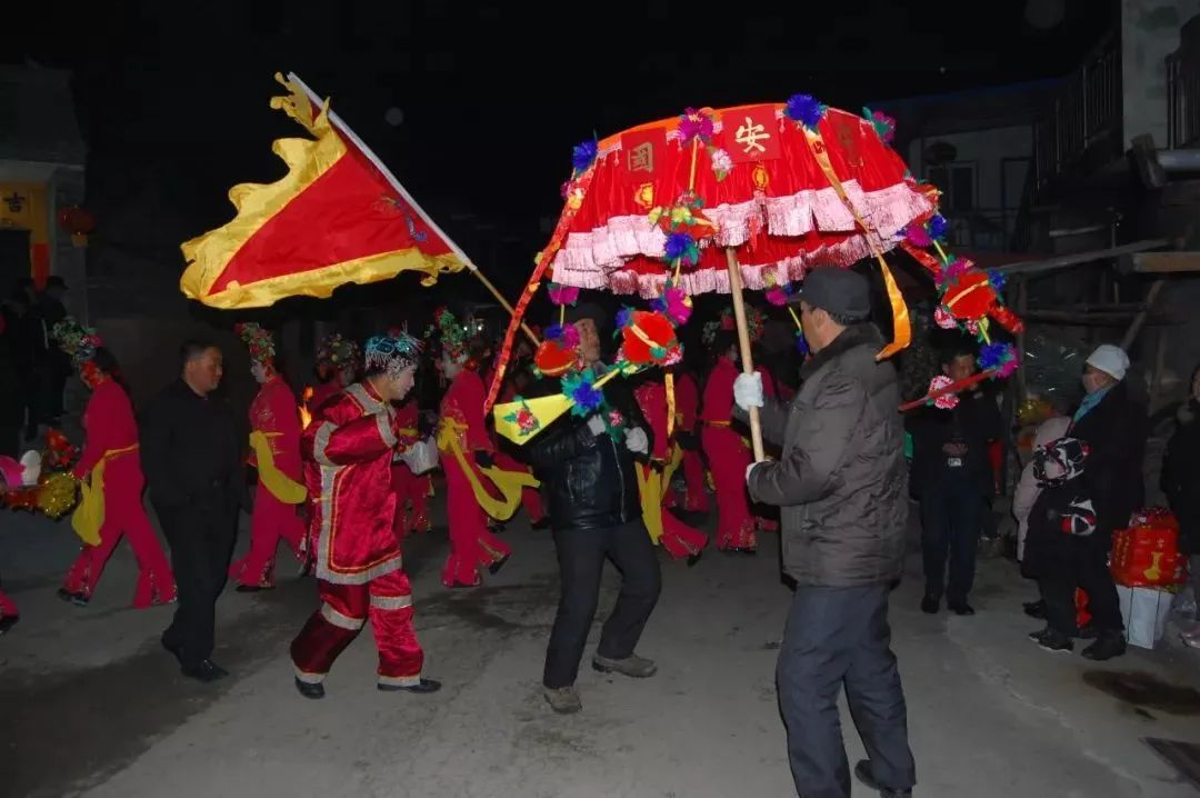 “正月里,年到头,秧歌本是圣人留 ;一费鞋脚二费油,男扮女装满街游……”这是一首关于秧歌的曲子。 在天水,包括跑花灯、对唱、打鼓、小丑、舞狮等技艺的夜社火,以串唱民间小曲为主,大多在表演过程中,演员嘴中都念念有词,这样的黑秧歌在天水西南的秦岭、牡丹、杨家寺三镇一些村庄颇为盛行。