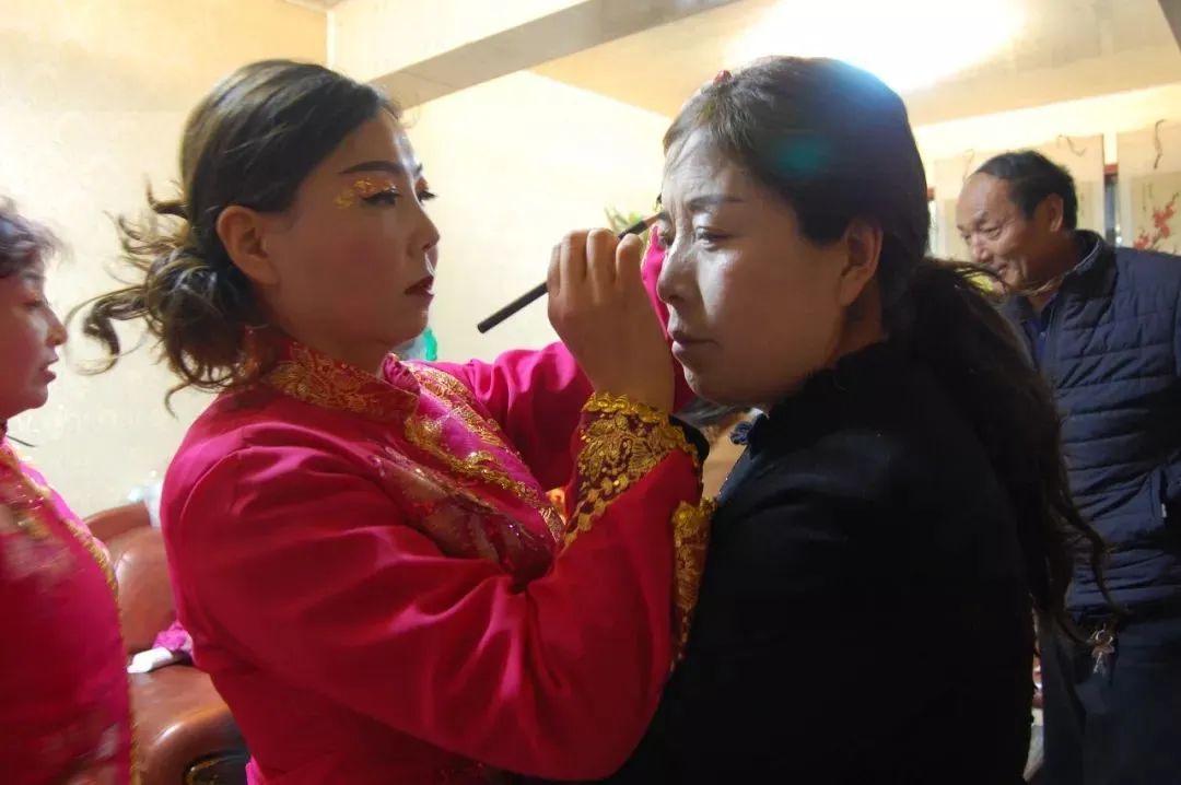 社火队里的“女身”,一般都是由青壮年男子扮妆的,一方面男子声音洪亮,唱出的小曲气氛浓厚,另一方面,社火演出有时候要走出几十里外,演出到很晚,女子一般不方便,所以大都就由青壮年男子替了“女身”。但是后来,在部分村子的社火队里,又逐渐换回了“女身”。听鼓声,鼓声停止,进唱一“男身”一“女身”,其他的男女身照旧围圆了圈子扭着秧歌步,场子里“男身”独唱,“女身”围绕“男身”扭。