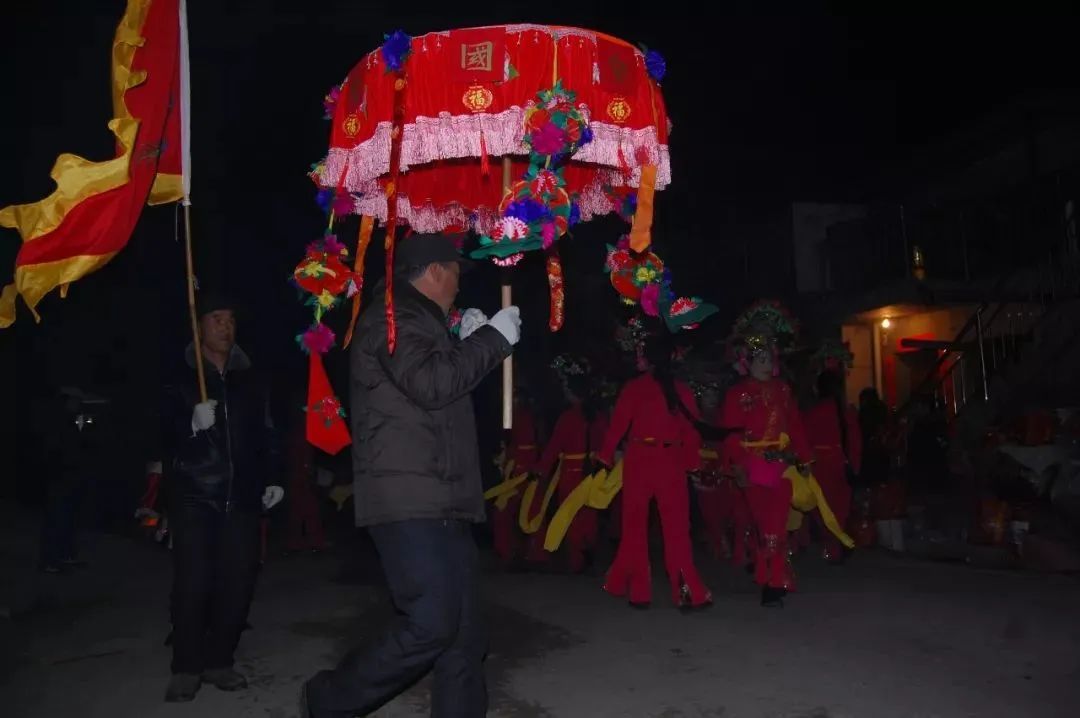 黑社火是以串唱民间小曲为主,集跑花灯、对唱、打击乐(鼓、钹、锣等)、管弦乐(板胡、二胡、笛子等)、小丑、舞狮等技艺于一身,由一折又一折风格各异的独幕剧组成。“跑花灯”这个节目排在第一,也是压轴节目,演员的要现编现唱,还要声调宏亮、吐字清晰、押韵圆润,最能考究演员的水平。一般由“打高伞”的在前面引路,后面是着装打脸的“女身”和没有化妆的散唱“男身”,“男身”相隔“女身”,相互插队跟上。