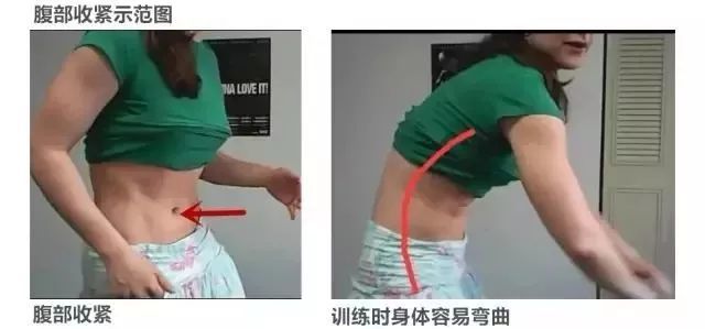 核心收紧和腹部收紧还有一个区别是身体是否成直线,因为核心收紧会使得身体成为一个紧绷的“刚体”,所以不管做什么动作,核心区都不会任意弯曲。