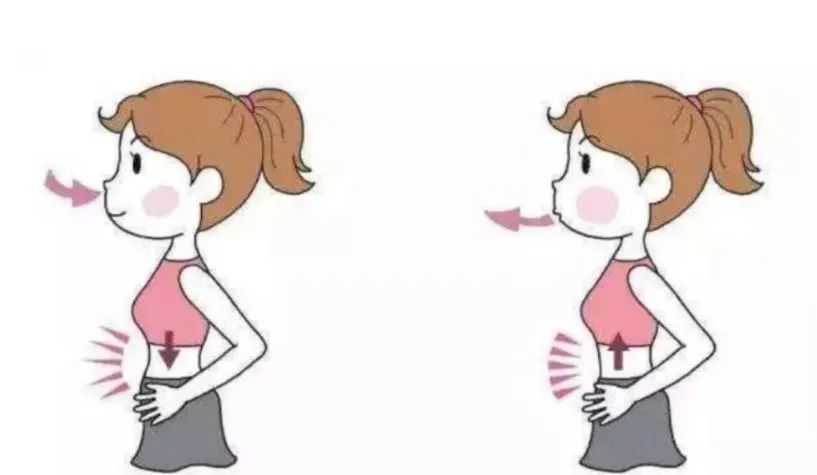 吸气鼓肚子,呼气瘪肚子,保持肚子瘪的状态,把手摸在肚皮上,同时咳嗽一下或者假笑一下,那一下就是核心收紧的感觉。