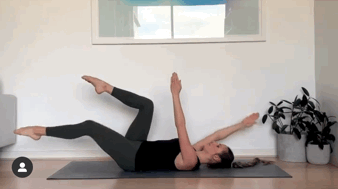 右手、左腿往两头伸直