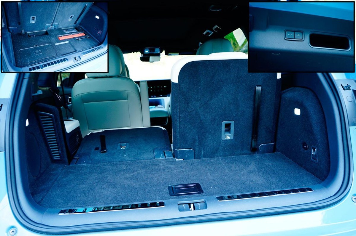 在三排使用的情况下,尾厢还有一定的装载空间,能放置三四个中号行李箱,长途旅行可以对付一下。第三排座椅支持对半放倒,平整度也比较高。地板下方布置了12V蓄电池和三角架,但没有备胎。