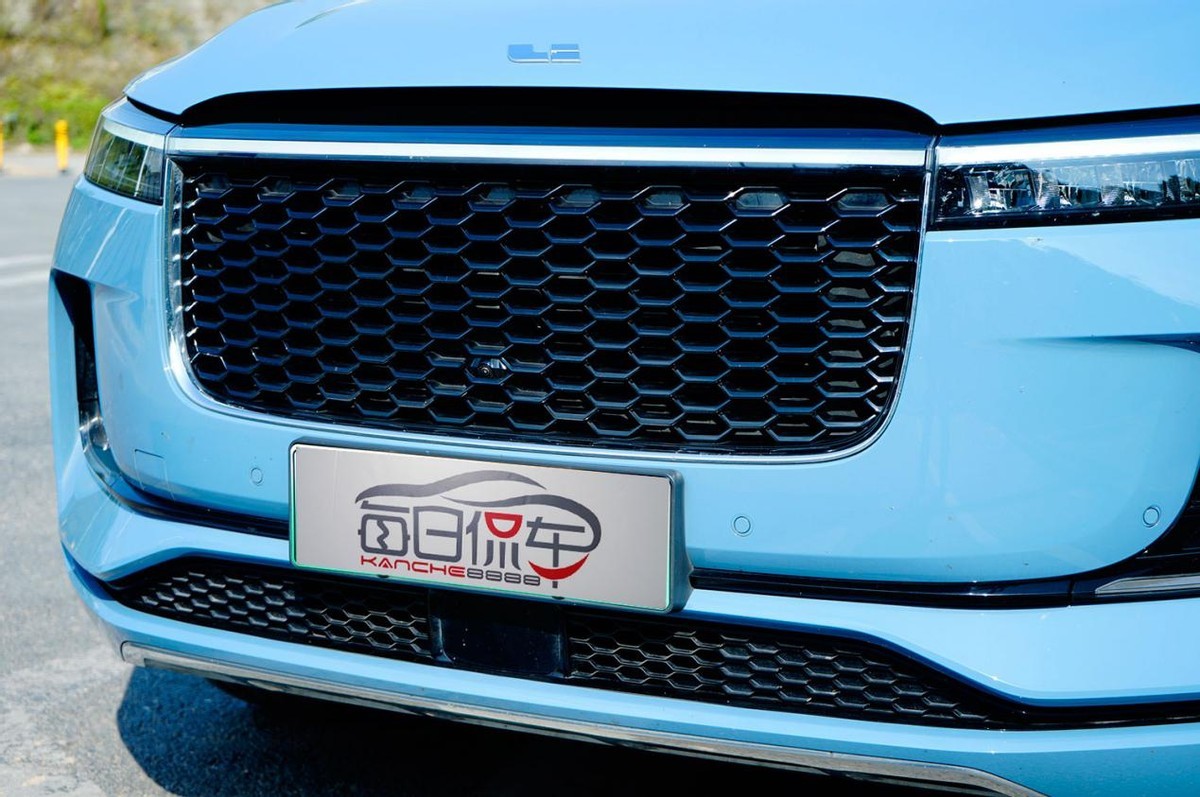 前脸造型简洁,大尺寸矩形中网内部是亮黑色蜂窝状格栅,顶部是环绕式日行灯,前置摄像头位于格栅内部,隐蔽性不错。下格栅细长扁平,中置毫米波雷达,同样不显突兀。
