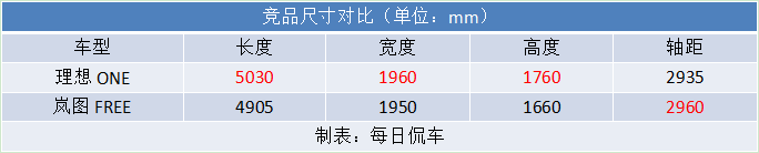 车身尺寸长宽高分别为5030/1960/1760mm,轴距为2935mm,长度相比旧款增加了10mm。国内目前增程式中大型SUV不算多,与主打运动的岚图FREE相比,它的轴距虽然略短,但尺寸却要大出一圈,尤其高度多出不少,这也是后者无法布局三排座椅的原因之一。
