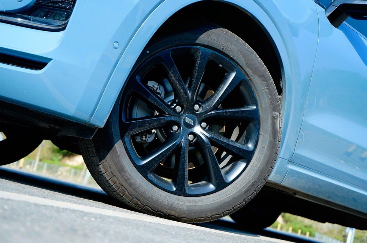 轮圈有黑色运动型、双色运动型和双色豪华型三种风格,其中双色运动型为新款增加的,都是20英寸。图中的黑色运动型条幅很细,有些改装风格。轮胎规格为255/50 R20,胎宽与尺寸匹配,保证抓地性,匹配米其林Primacy SUV旅悦系列产品,这是一款城市SUV轮胎,拥有不错的静音性。