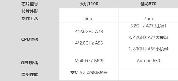 综合比较来看骁龙870要比骁龙778G不止高了一个档次,实际使用中一些搭载骁龙888系,骁龙8 Gen1芯片手机玩大型游戏那种降频,降帧的把戏,简直与骁龙870没有太大差距。回到天玑1100上来,骁龙870的性能又领先于它,不过骁龙870唯一的遗憾是必须外挂基带。