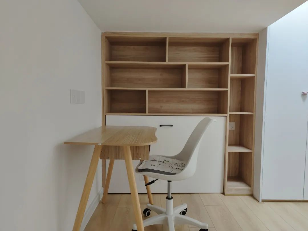 再等孩子大一些上高中、大学或工作了,在家不需要用到书桌了,床下空间就可以改成衣柜收纳空间,提供更实用储物位置。
