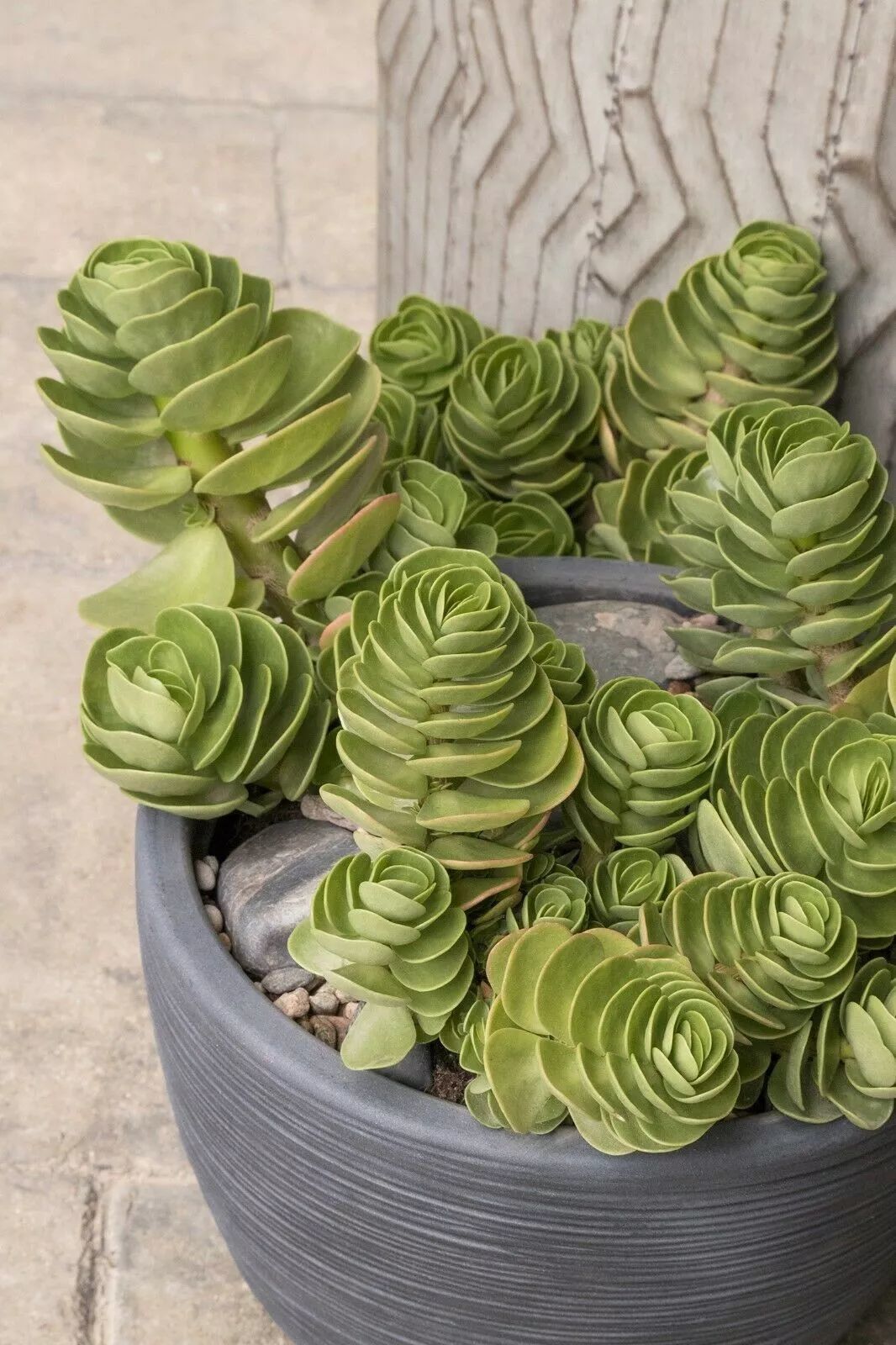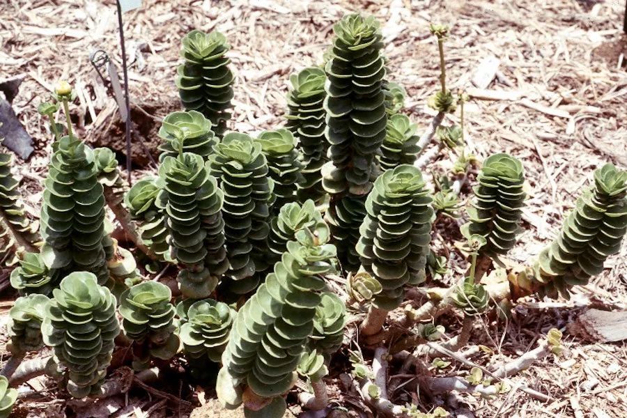 金钱木的叶片会比大花马齿苋要大上很多,它的叶子就如同一个个圆形的扇贝一般,重重叠叠的长在枝条上,长得特别均匀,所以观赏性会非常好,有人就觉得它的叶片就像一串串金币串在枝条上。