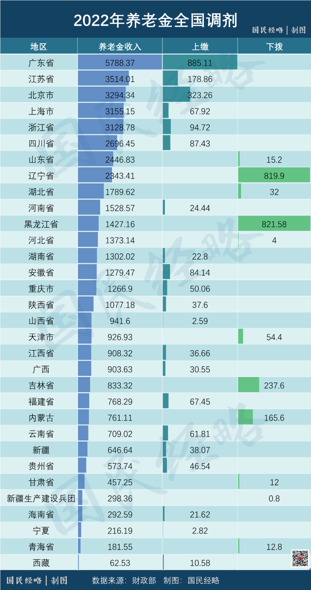 过去3年,累计向全国转移支付了2000多亿元养老金,仅2022年就上缴了885亿元。
