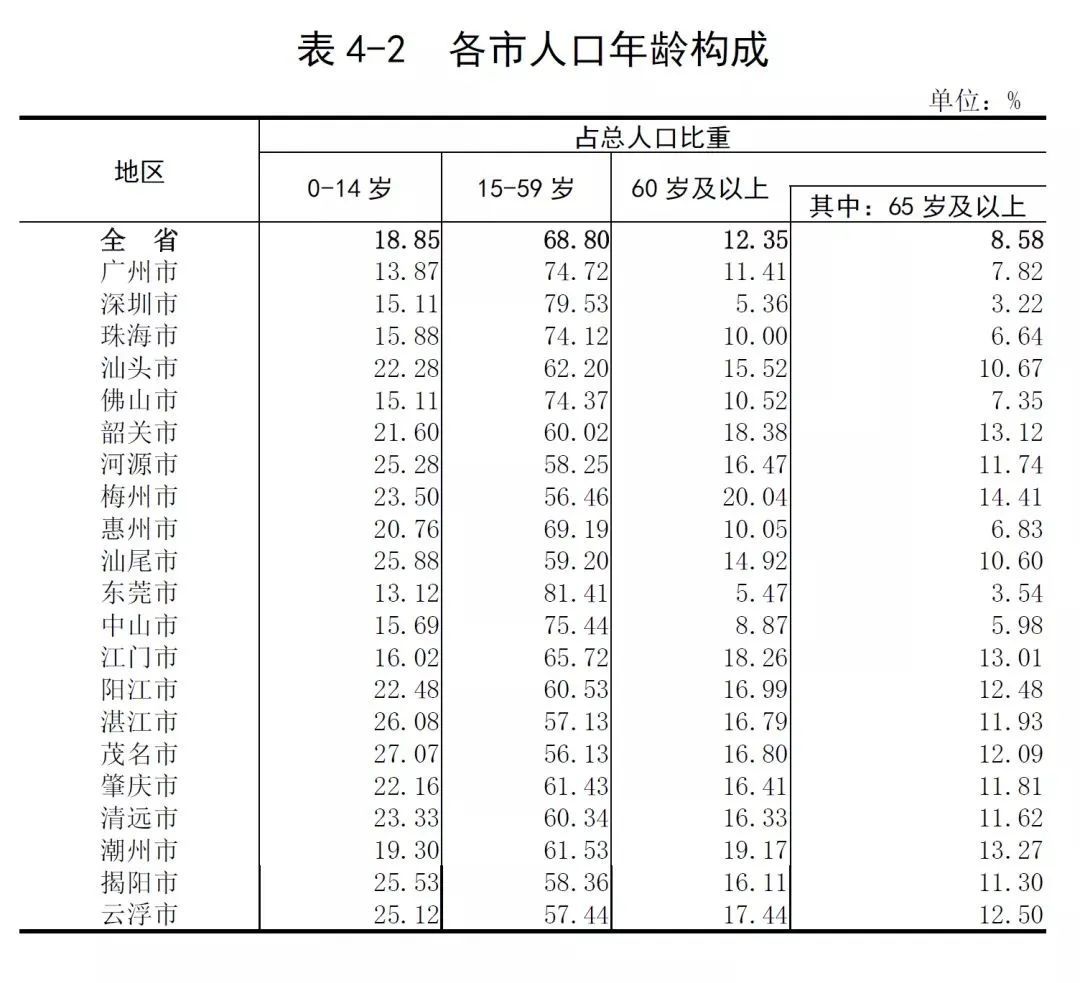 与之相比,广东老龄化率仅为8.58%,深圳、东莞等地更是低到3.22%、3.54%,人口结构堪称优秀,而且是极其优秀。(参阅《官宣!中国第一个12万亿大省诞生》)