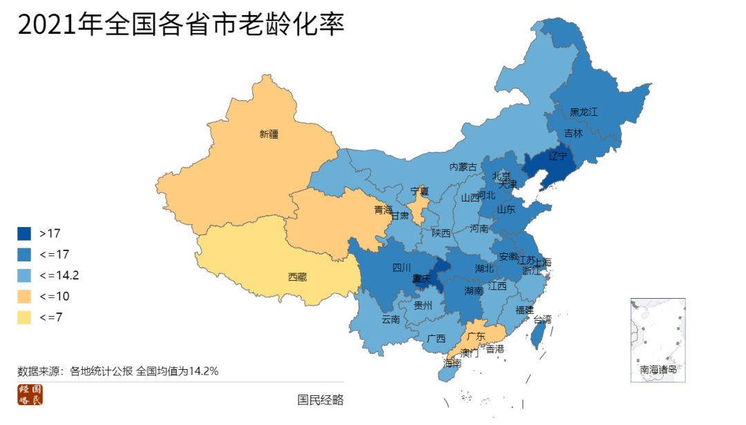 可以看出,我国大多数省份已经步入深度老龄化社会,部分省份离超老龄化社会只有一步之遥。