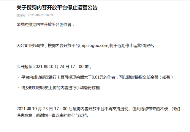 在趣头条之前,已经有搜狗自媒体平台,在2021年10月退出了江湖。