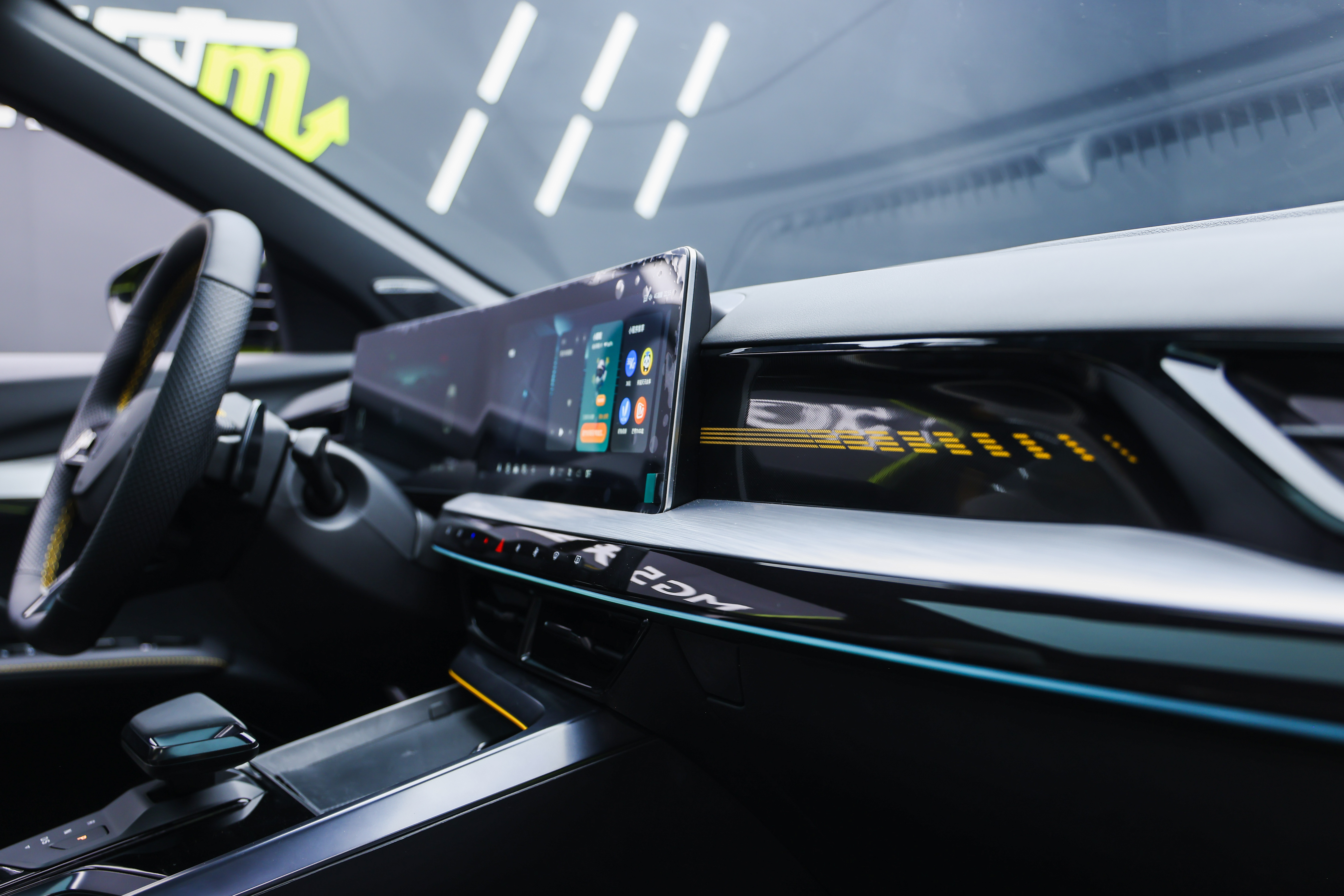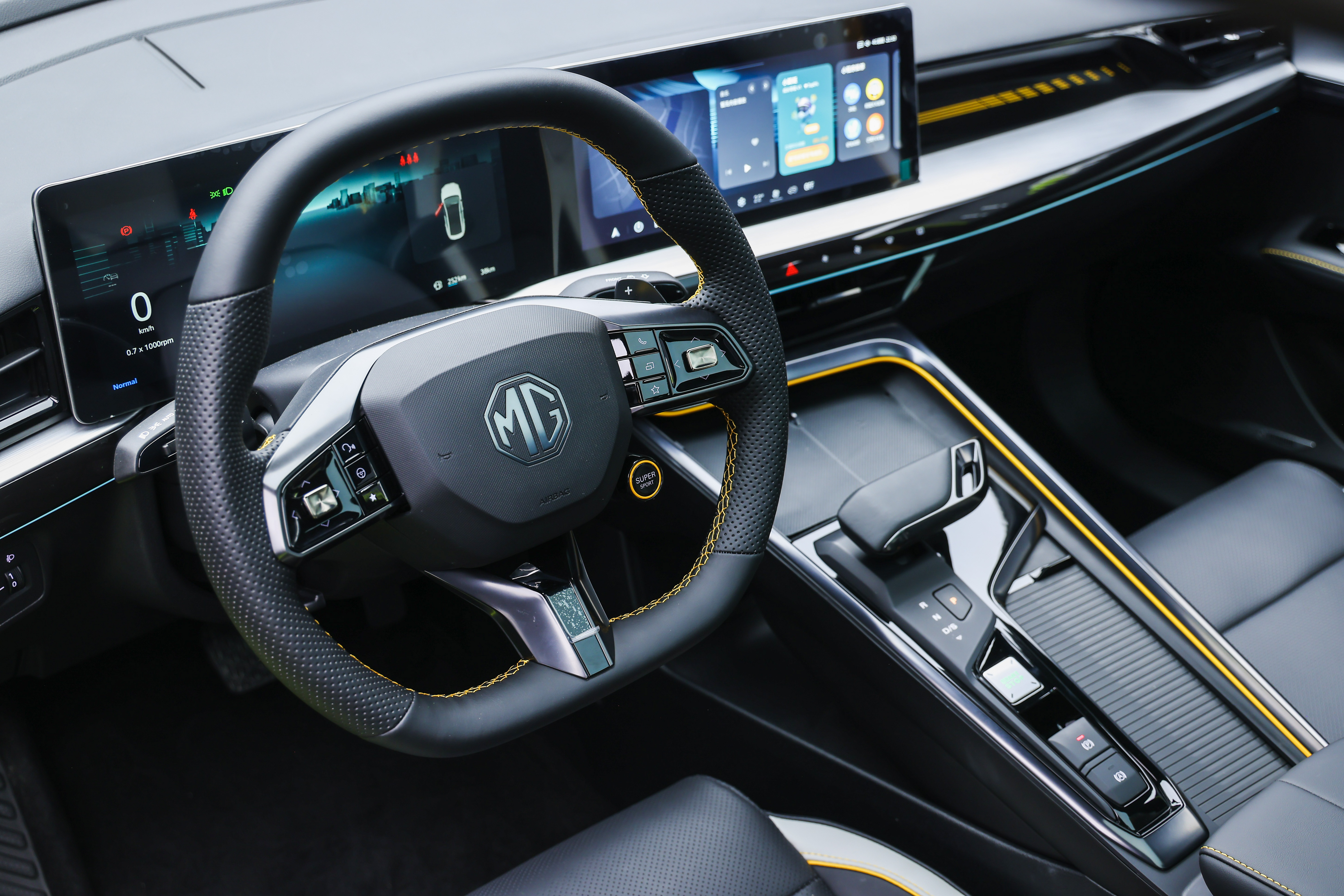 内饰设计方面,MG5天蝎座也有自己的思考。MG5天蝎座秉承着与用户“共情”的理念对内饰进行打造,整体采用以驾驶者为中心的唯我空间布局及非对称式设计,双12.3寸中控屏向驾驶者一侧倾斜,不仅视觉上更沉浸,操作也更便利。