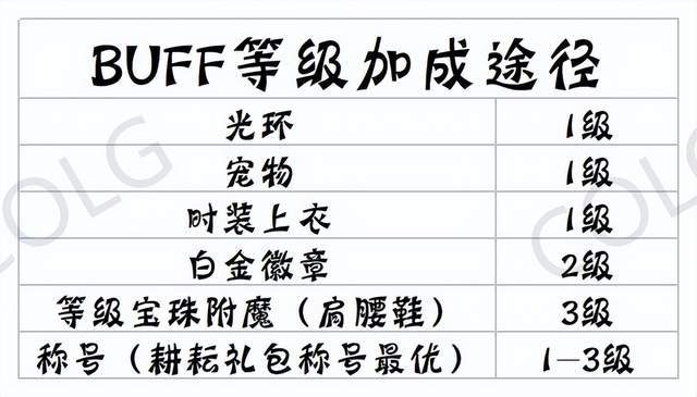 由上图可知,buff换装要达成完美配置(选用时空之渊特殊装备),我们基础等级为5级,选用时空之渊装备再增加1级,这时我们就需要再堆4级才可以满级,这时如果选用白金徽章技能宝珠等就消费较大,这时我们选用耕耘礼包的3级称号较为节约,如果宝珠白金等有多余时,也可以选择二级称号等更为便宜的方法,具体各种堆法见下图:
