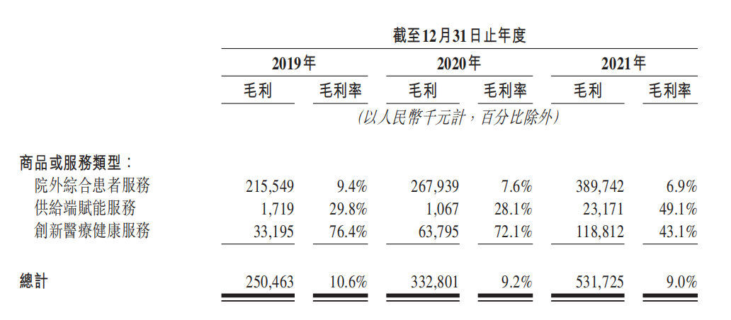 据《招股书》数据,圆心科技的整体毛利率并不高,约在9%左右。其中院外综合患者服务的毛利率仅为6.9%,大幅拉低了整体毛利率。