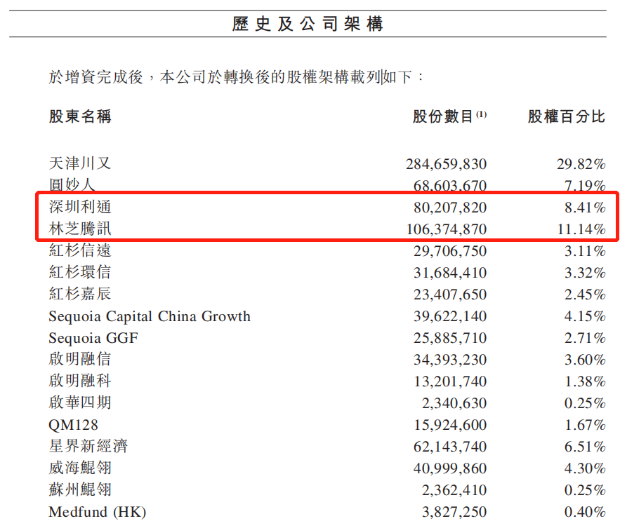 根据《招股书》披露,F轮之后,圆心科技的估值高达275亿元。粗略统计,腾讯参与了公司的A轮、B轮、C轮、E轮以及F轮融资,对圆心科技的总投资至少15亿元。与此同时,腾讯也以持股19.55%的比例,成为圆心科技第二大股东。红杉资本持股15.74%,启明资本持股6.9%。