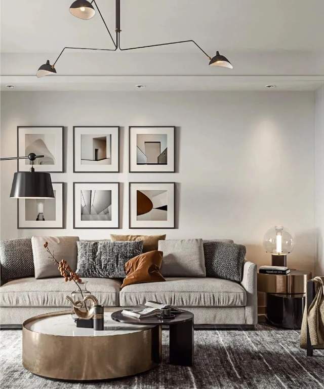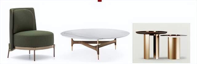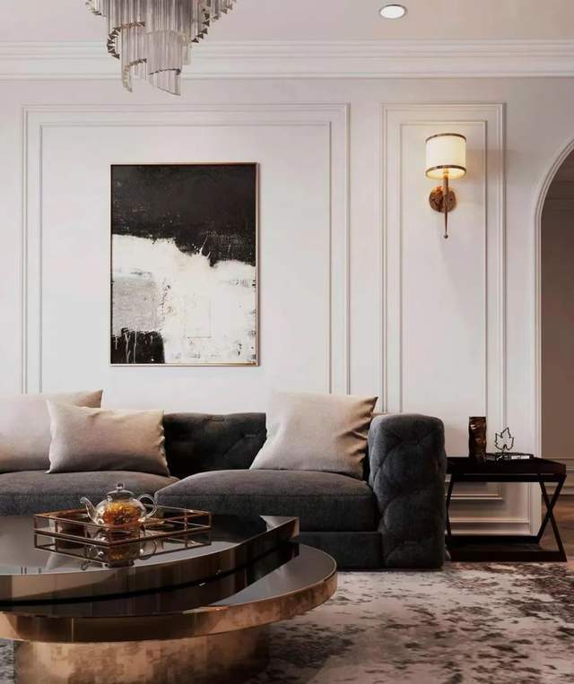 与之相匹配的茶几,我们可以选择小型、圆桌、玻璃或金属质感的茶几,这种茶几精致小巧,非常符合轻奢风的特点。