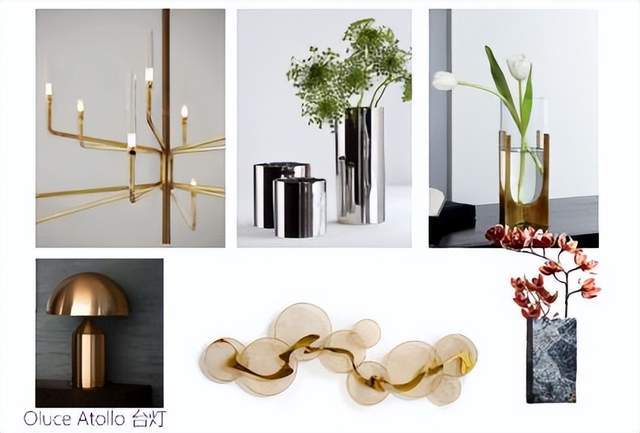 在选择装饰或是其他小型家具时,我们也要秉承轻奢风的特点,选用带有金属、玻璃或是大理石成分的家具,可以选用现代简约花艺进行植物装饰。