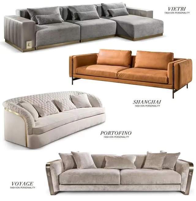 我们可以在选沙发时,挑选含有金属装饰或底座的沙发,最好用的是丝绒面料,这样看起来更具奢华感。颜色推荐高级灰色,或是高饱和色彩(酒红、宝蓝等颜色)。