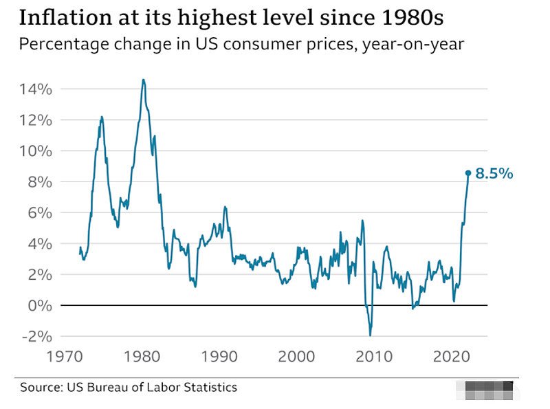 今年3月,美国CPI环比上涨1.2%,同比增长8.5%,同比涨幅创1981年12月以来的最高水平。