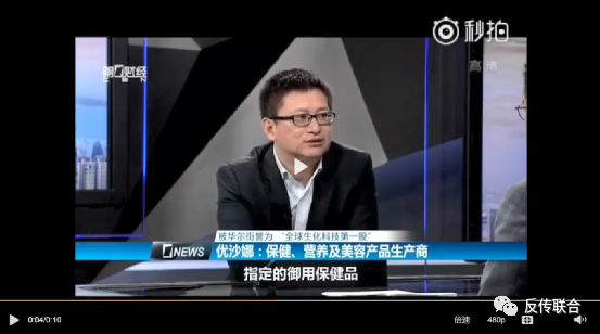 为了中国市场,号称从来不打广告的USANA也是下了血本了,不惜重金在2016年8月在上海第一财经频道播出的《从华尔街到陆家嘴》节目(一个报道美国股市为主的财经栏目)中,通过节目嘉宾(时任钜派投资集团首席策略官许戈)对USANA公司的财报进行分析,借用其口讲出USANA是“英国皇室指定的御用保健品”这样的话。