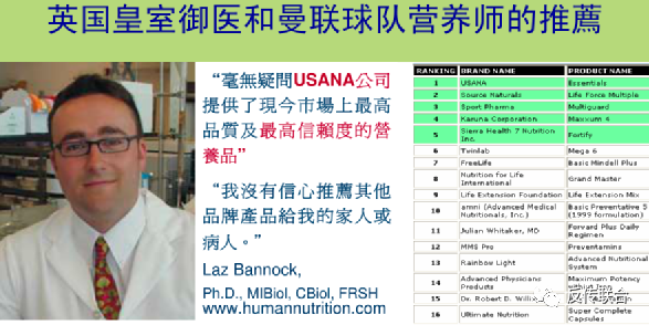 葆婴不是说这位Dr. Laz Bannock声称“除了优莎娜(优莎娜)USANA,我不会推荐任何其他营养品给我的病人和家人”吗?怎么人家的文章却把USANA竞争对手的产品称为“营养学的突破”呀?这不是公然为竞争对手做广告吗?