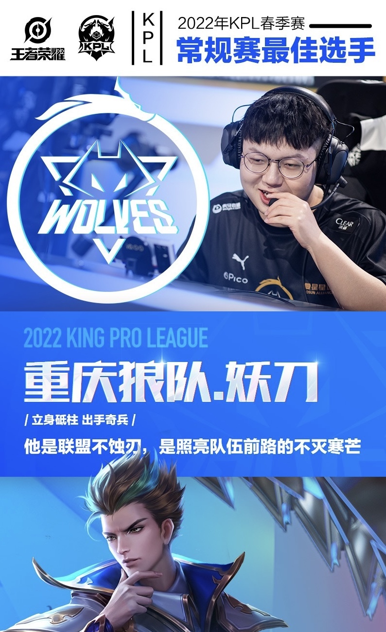 钟乐天(ID:妖刀)当选2022KPL春季赛常规赛最佳选手。图/KPL微博